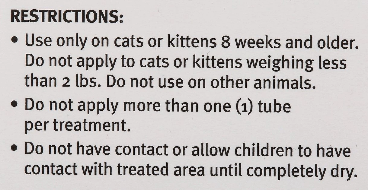 For use only on cats 8 weeks and older and weighing 2 – 5 lbs. Keep out of reach of children. Always read the entire product label before using this product.