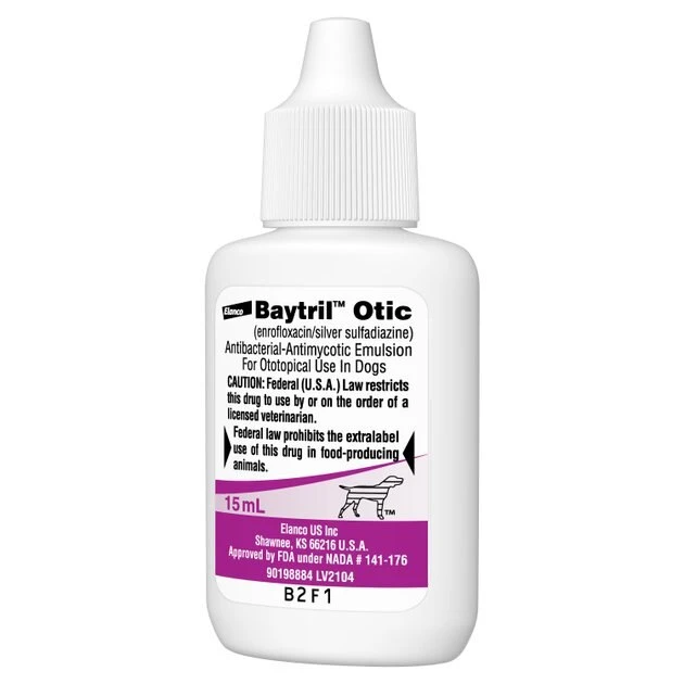 Baytril is an antibacterial solution prescribed by many veterinarians for pets who have an ear infection caused by susceptible bacteria or fungus. It was the first FDA-approved topical solution to treat ear infections in dogs, and it’s a water-based emulsion that also helps to soothe infected ears.