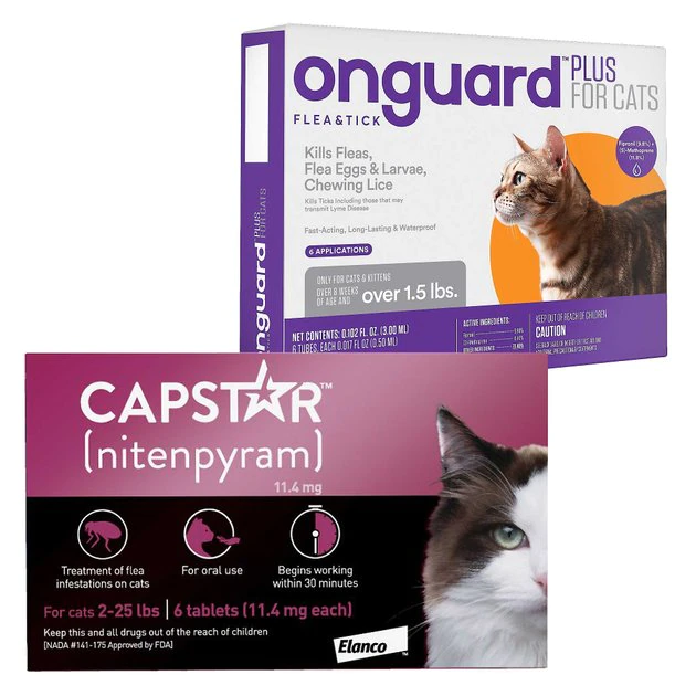 Pests are pesky little things, but with Capstar Flea Oral Treatment, 2-25 lbs + Onguard Plus Flea & Tick Spot Treatment for Cats, over 1.5-lbs, you can get rid of fleas and ticks, and treat spots with care. Capstar’s flea tablets, for cats and kittens between 2 and 25 pounds, start working within 30 minutes and have been proven to be more than 90% effective in eliminating adult fleas within just hours. Onguard Plus’s spot treatment, for cats over 8 weeks between 1.5 and 22 lbs., is a long-lasting topical treatment that kills fleas and ticks and controls infestations of chewing lice, working works quickly to rid your cat of these pest and keep them from coming back. Plus, it’s designed to be waterproof after 24 hours, fast-acting, and long-lasting—one easy topical application works for 30 days. Say goodbye to pests for good!