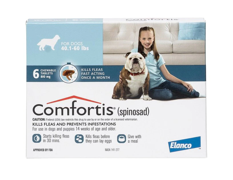 Comfortis is a chewable medication prescribed by veterinarians for dogs to help treat — and possibly even prevent — flea infestations for up to one month. These flavored tablets can be added to your pet’s favorite food and only need to be given to your canine companion once a month to help combat fleas.