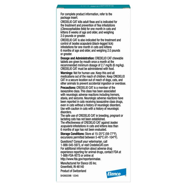 Credelio Cat is FDA-approved as safe and effective when used according to the label.