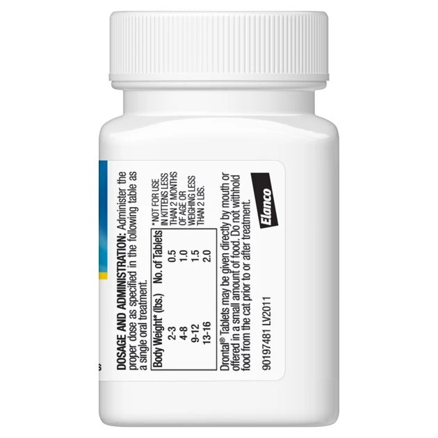 Give Drontal orally directly by mouth or crumbled and mixed with a small amount of food. Use only as directed by your veterinarian. If you give tablet(s) with food, monitor your cat closely to make sure he/she eats all of the food. Always call your veterinarian if you have difficulty giving this medication correctly.
