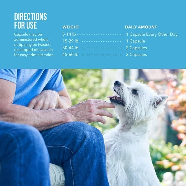 - Easy dosing capsules may be given to your pet orally, or you can snip off the tip of the capsule and squeeze it directly onto your pet’s food