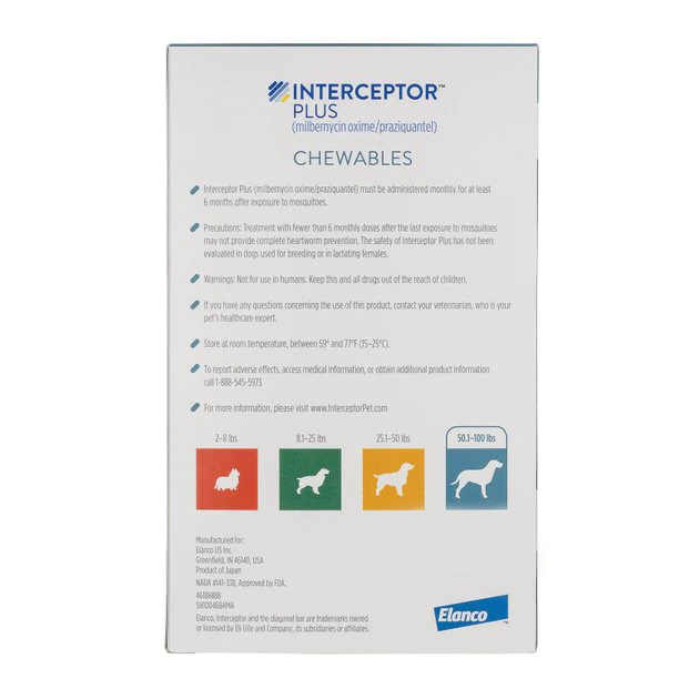 You can give Interceptor Plus to your dog by hand or add it to a small amount of dog food. Administer the chewables in a manner that encourages your dog to chew, rather than to swallow without chewing. If your dog normally swallows treats whole, you may break the chewables into pieces and feed them to your dog.
