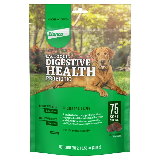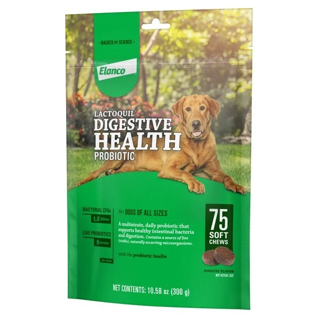 Lactoquil is a daily probiotic soft chew to be used for ongoing digestive health support for dogs only. It contains high levels of live, viable, naturally occurring beneficial bacteria (like some yogurts) to assist in healthy digestion and absorption.