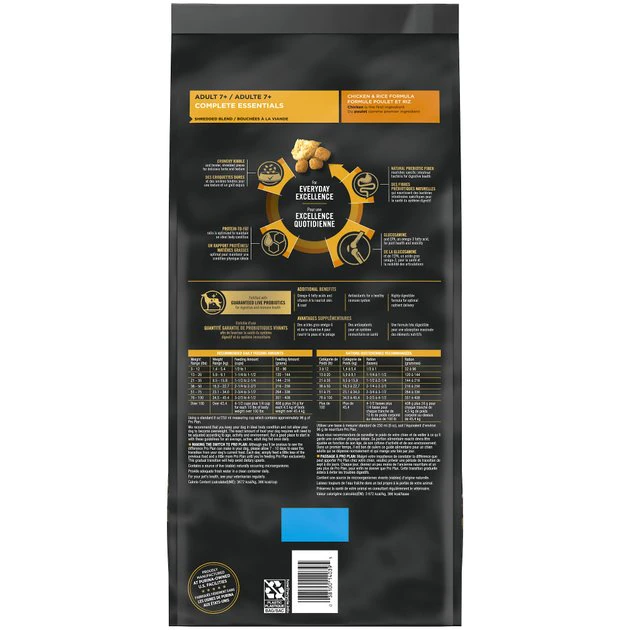 Care for your older dog’s nutritional needs while giving him the taste he loves with each bowl of Purina Pro Plan SENIOR Shredded Blend Chicken and Rice Formula Adult 7+ dry dog food. Featuring real chicken as the number 1 ingredient, this immune system support formula delivers the outstanding nutrition your senior dog needs to maintain his healthy body. Our delicious chicken and rice dog kibble recipe doesn’t compromise on nutrition or flavor, creating a wholesome meal that makes you both happy. Enjoy seeing him come running for the crunchy kibble combined with tender shredded pieces for a taste and texture that dogs love. Prebiotic fiber supports beneficial bacteria in your dog’s intestinal tract, while guaranteed live probiotics help support digestive and immune health. Feeding him Purina Pro Plan SENIOR Shredded Blend Chicken and Rice Formula Adult 7+ dry dog food lets you feed him what he needs to stay happy and active.