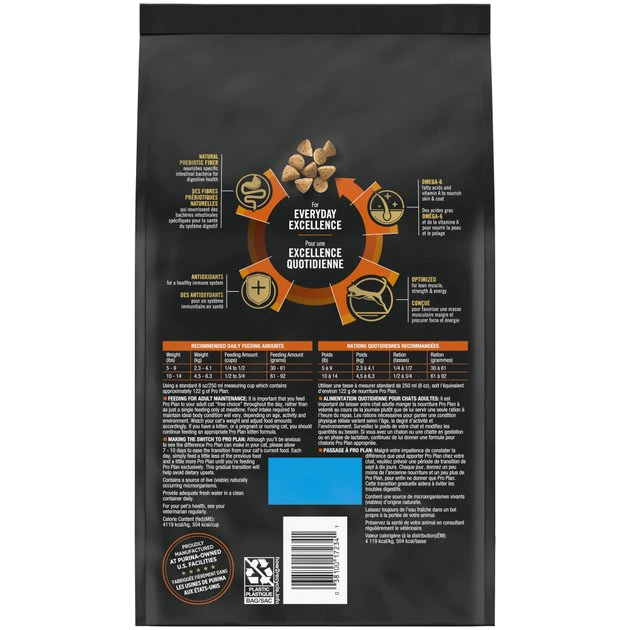 Although you’ll be anxious to see the difference Pro Plan can make in your cat, please allow 7 – 10 days to ease the transition from your cat’s current food. Each day, simply feed a little less of the previous food and a little more Pro Plan until you’re feeding Pro Plan exclusively. This gradual transition will help avoid dietary upsets. Contains a source of live (viable) naturally occurring microorganisms. Provide adequate fresh water in a clean container daily. For your pet’s health, see your veterinarian regularly.