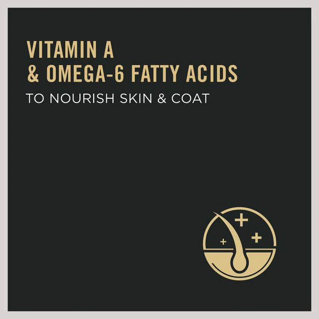 - Omega-6 fatty acids and vitamin A to nourish skin and coat