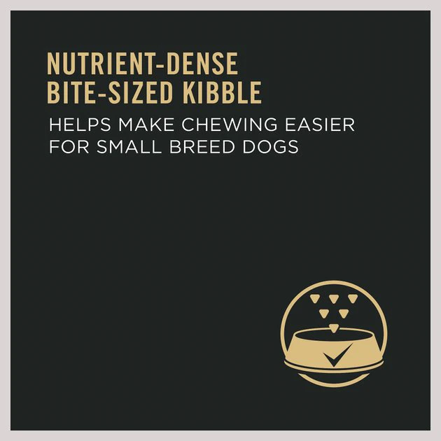 - Nutrient-dense, bite-sized kibble helps make chewing easier for small breed dogs.