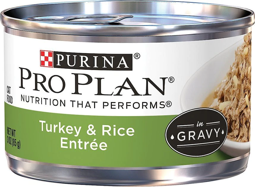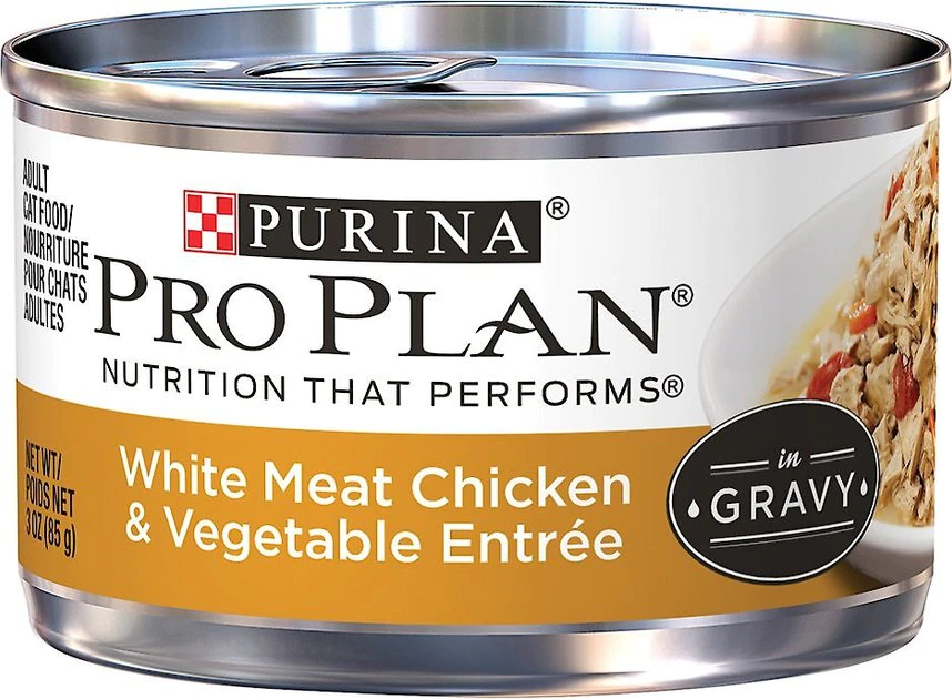 Give your pal a meal with a purpose by serving up a bowlful of Purina Pro Plan Chicken & Turkey Favorites canned cat food. This variety pack comes with eight cans of three delectable recipes, including Purina Pro Plan’s Chicken & Rice Entree, Turkey & Rice Entree, and White Meat Chicken & Vegetables Entree. Each recipe is crafted with real, tender turkey or chicken in a lip-smacking gravy for the added moisture your cat needs to stay hydrated. They’re also formulated with 25 essential vitamins, minerals and nutrients to support her immune system, plus taurine—an amino acid that helps support her overall health. So, show your feline friend some extra love by adding some variety to her diet with this irresistible Purina Pro Plan variety pack.