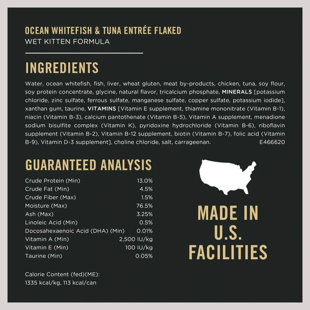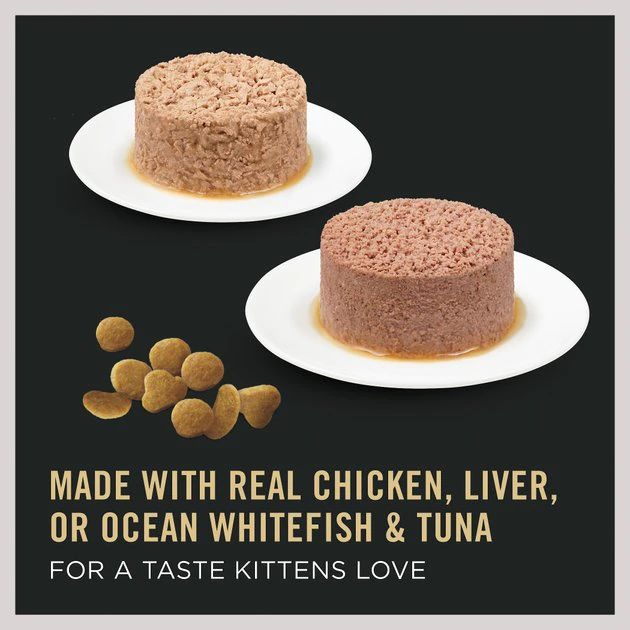 - This variety pack includes 3 recipes that are crafted with high-quality ingredients. Choose from Chicken and Rice, Ocean Whitefish and Tuna or Chicken and Liver kitten formulas!