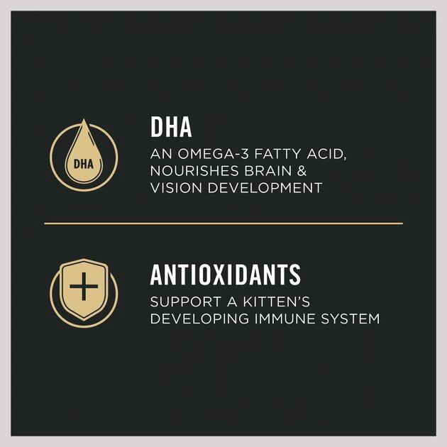 - Features top kitten essentials like DHA, a great source of omega-3 for cats that nourishes brain and vision development.