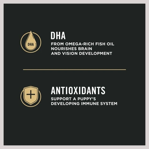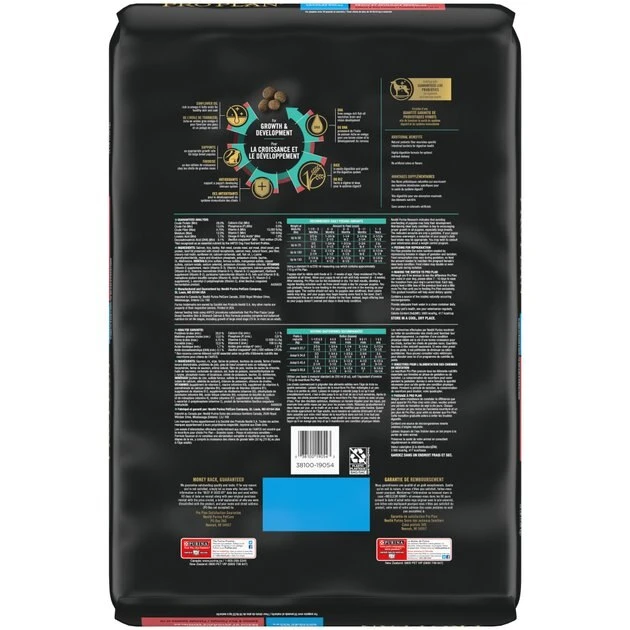 Start your puppy’s diet off on the right paw with Purina Pro Plan Development Sensitive Skin & Stomach Salmon & Rice With Probiotics Large Breed Dry Puppy Food. This nutritious and delicious recipe is specifically made for large breed puppies before their first birthday. Real salmon is its main ingredient, which is complemented by rice to promote an easily digestible meal. This recipe is also made with live probiotics to support digestive system and immune health. It contains vitamin A and sunflower oil, which promotes skin and coat health. Plus, you can feel good knowing that this recipe contains no corn, wheat, soy, or artificial colors or flavors. Bone appétit!