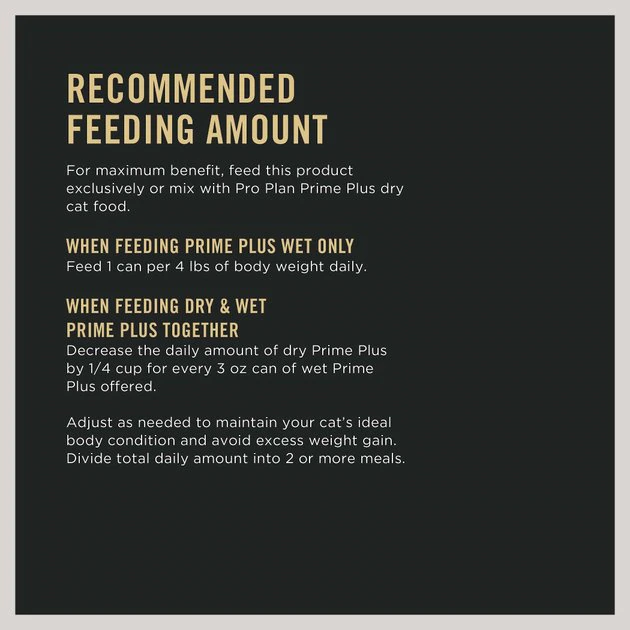 For maximum benefit, feed this product exclusively or mix with Pro Plan Prime Plus dry cat food.