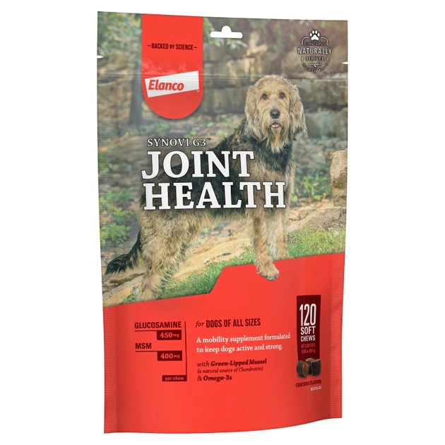 Synovi G3 Joint Health Soft Chews for Dogs are recommended to support joint function and flexibility and help strengthen joint cartilage. Formulated with Omega-3 fatty acids EPA and DHA in a palatable soft chew, Synovi G3 offers a proactive way to help support joints in healthy, active dogs. Powerful ingredients like glucosamine HCl and perna canaliculus provide routine joint support while MSM and vitamins C and E help provide antioxidants support your dog’s overall health.
